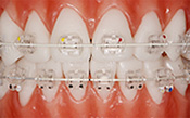치아색과 비슷한 투명한 장치로 기존 메탈 브라켓의 심미성을 보완하였습니다.